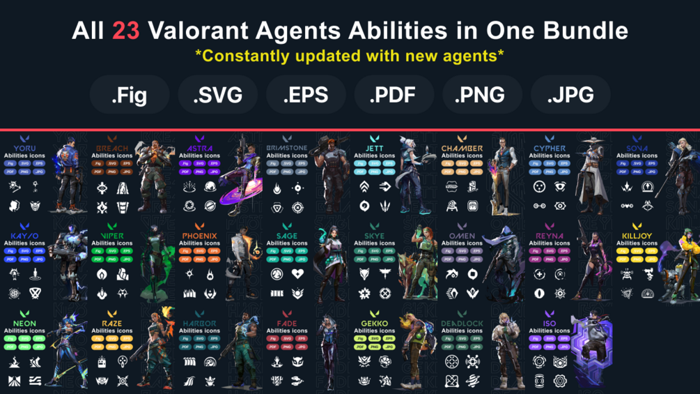 Looking for a complete bundle of high-quality Valorant Agents Abilities icons in various file formats? Look no further than our all-in-one bundle!